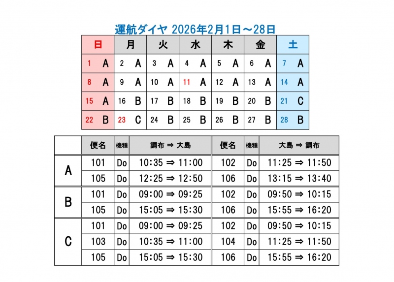 機材繰りその他の理由により運休 又は 発着時刻を予告なく変更する場合がありますので、お電話もしくは 本日の運航状況 でご確認下さい。 なお、ご搭乗手続きの締切り時間は、出発時刻の 30分前 となっております。